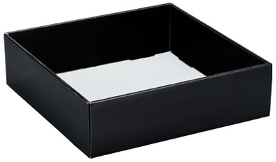 The decorative corrugated tray is a one-piece fold and tuck box design.  Buy bases & Lids separately packed in 6’s