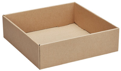 The decorative corrugated tray is a one-piece fold and tuck box design. Available in Kraft and solid colors, the trays are ideal for showcasing products, packaging coffee, wine, fresh fruit, and other gourmet food products.