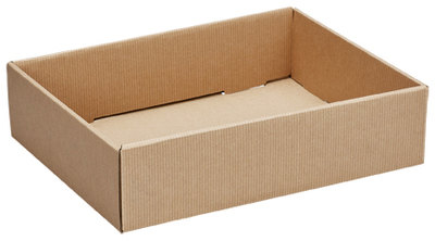 The decorative corrugated tray is a one-piece fold and tuck box design. Available in Kraft and solid colors, the trays are ideal for showcasing products, packaging coffee, wine, fresh fruit, and other gourmet food products.